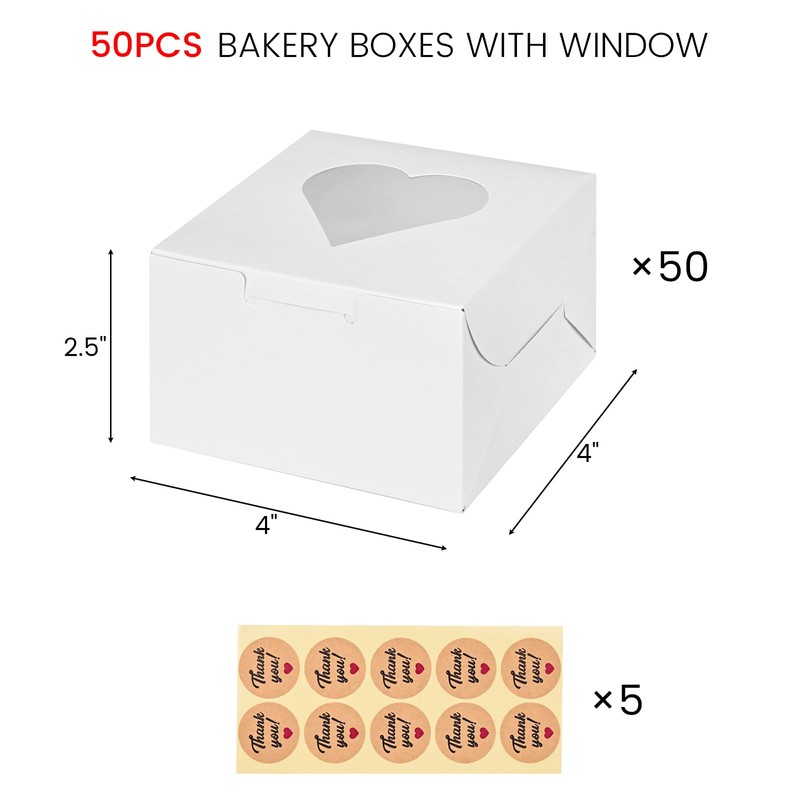 - Super Value Set - Our Small Bakery Boxes come with 50 bakery boxes and 50 charming "thank you" stickers. With plenty to go around, these bakery boxes with window are large enough to share with friends and perfect for creating thoughtful gifts.