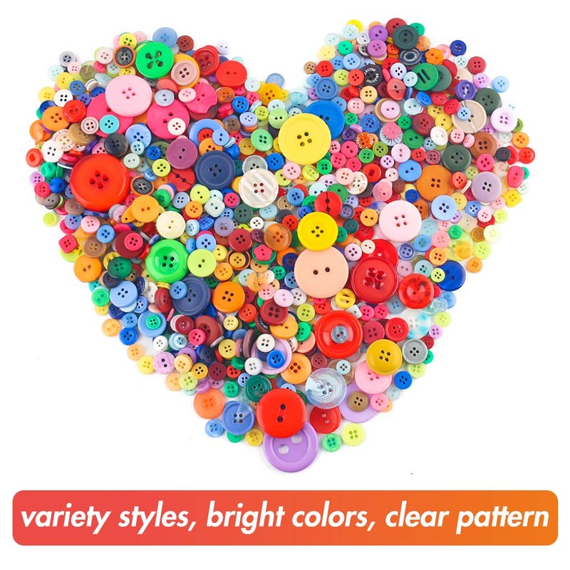 - Package includes: approx. 1000 pieces (about 500 g) colourful buttons in assorted colours, shapes and sizes.