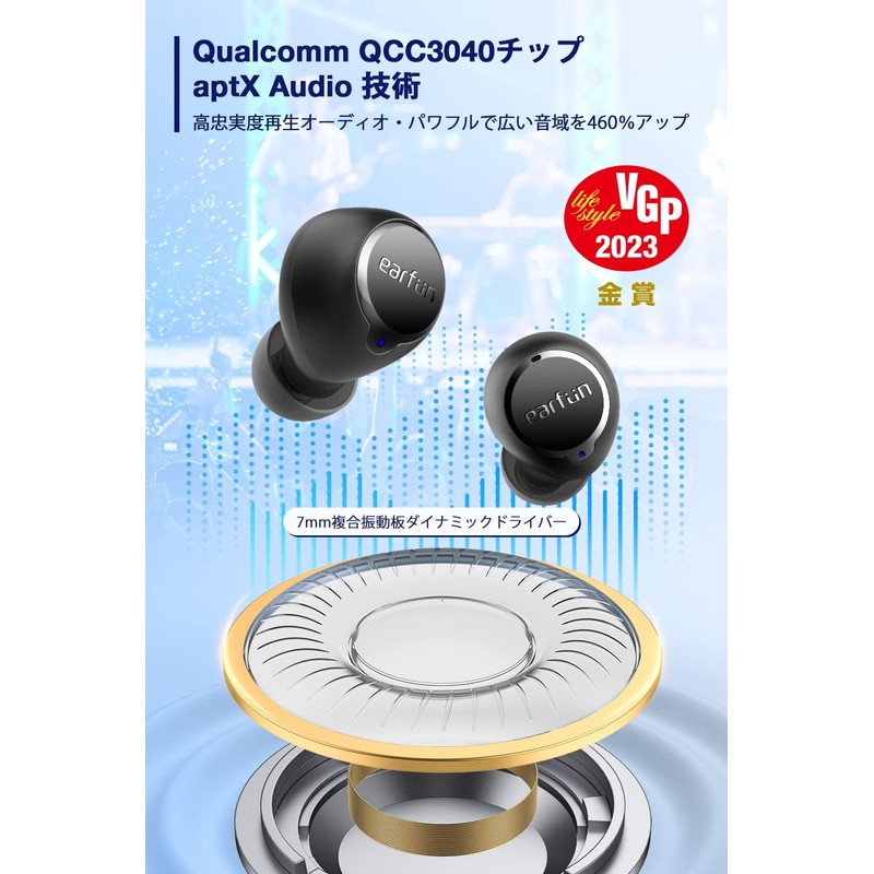 VGP 2023 Gold Award EarFun Free 2S Bluetooth 5.2 Wireless Earphones with Qualcomm QCC3040 Chipset, aptX Adaptive Deep Bass, 4-mic cVc, 8.0 Call Noise Cancelling, True Wireless