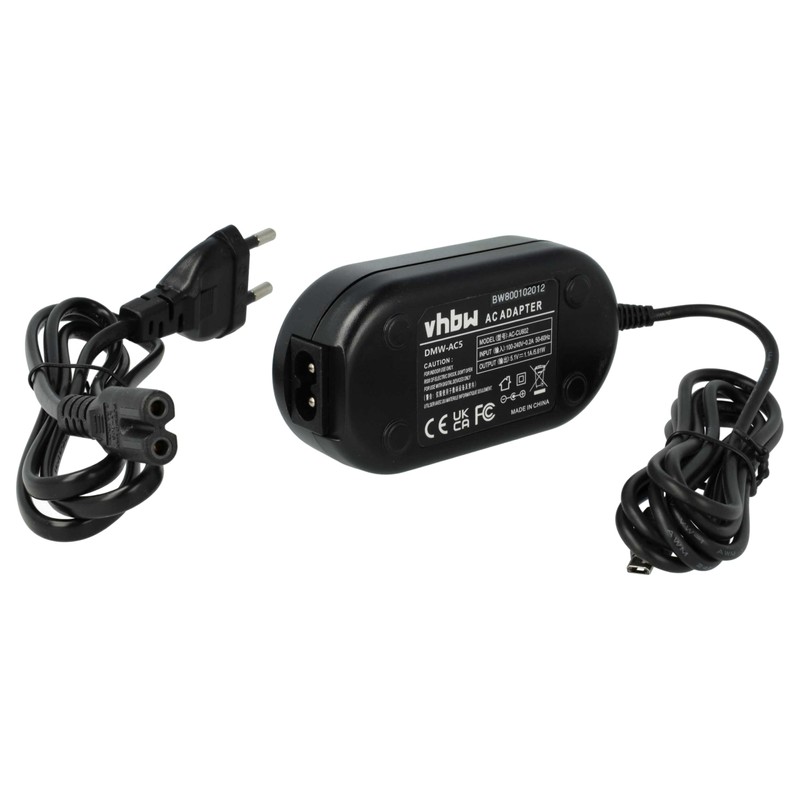 vhbw 2m Power Supply Compatible with Panasonic Lumix DMC-FX150, DMC-FX12, DMC-FX07K, DMC-FX07T, DMC-FX07R, DMC-FX10 Camera, Digital Camera