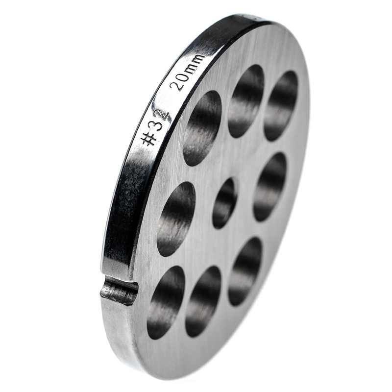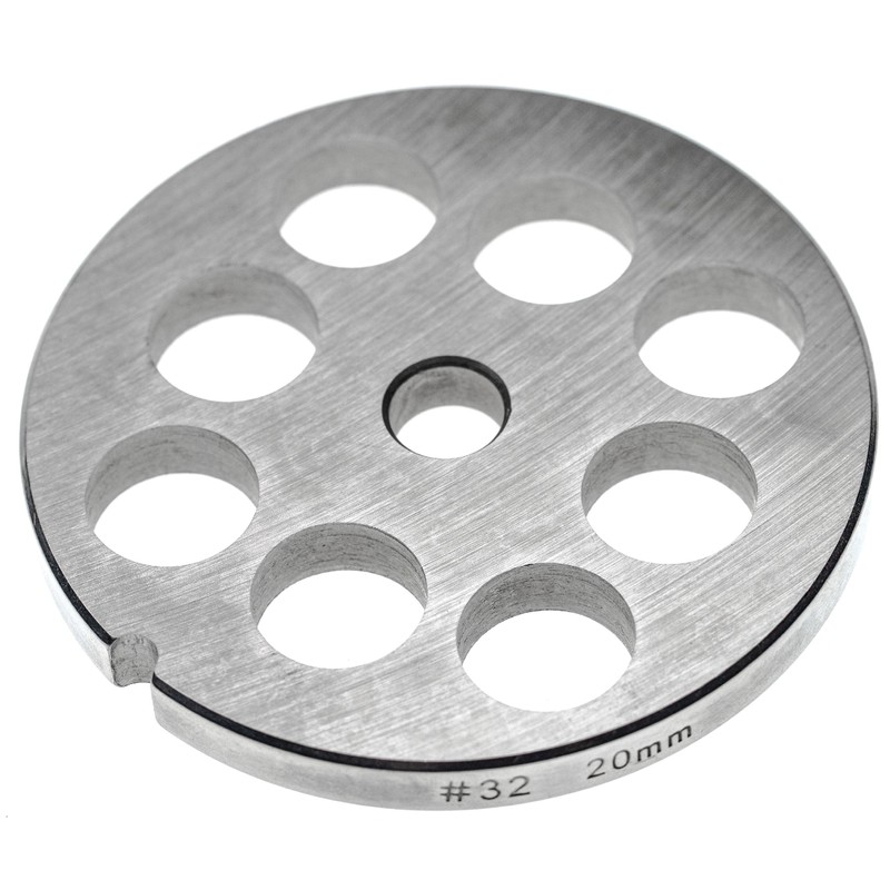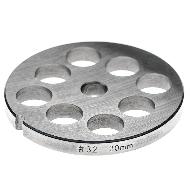 - Robust replacement perforated disc with 20 mm holes and 13.4 mm centre hole for meat chopper