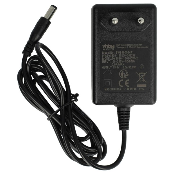 - Input AC: 100 - 240 V / 0.8 A Max | Output DC: 15 V / 2.0 A | Frequency: 50-60 Hz | Cable Length: 145 cm | Colour: Black