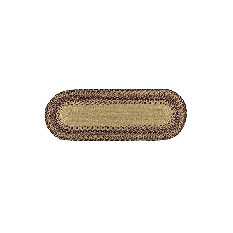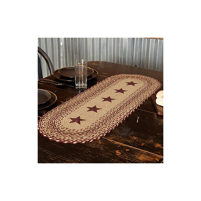 VHC Brands Burgundy Tan Primitive Jute Runner Braided Textured Stenciled Stars 13"x36"