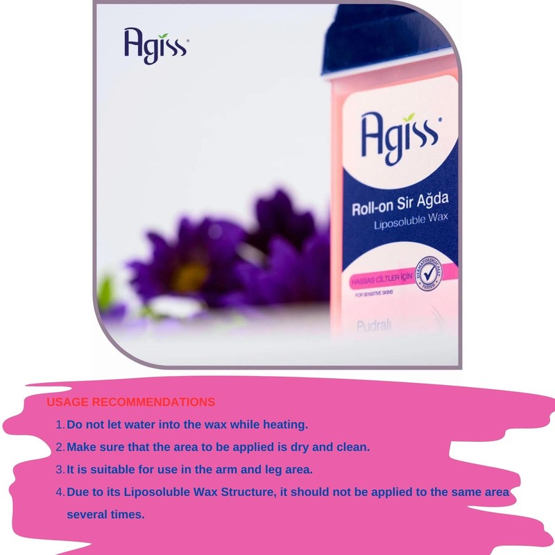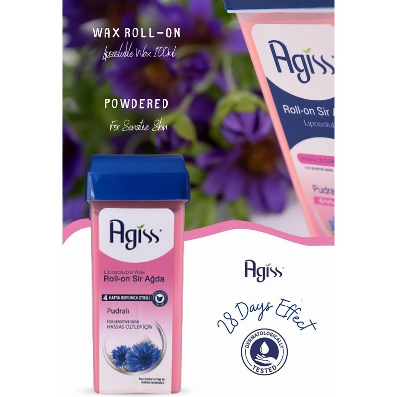 VHD Agiss Roll-On Wax – Roller Wax, Hair Removal Wax Cartridge, Liposoluble Wax, With Centaurea Cyanus (Bluebottle), Effective for 4 Weeks, Powdered, For Sensitive Skins, 100 ml / 3.4 fl Oz.
