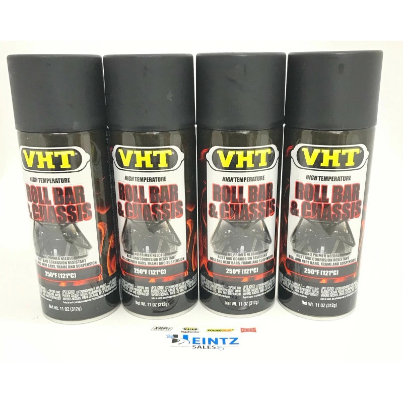 This is a 4 PACK of 11oz Aerosol spray can of VHT High Temperature SATIN BLACK Roll Bar and Chassis Paint.