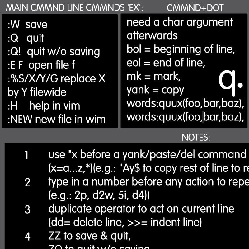 Vi/Vim Reference Keyboard Hotkeys Decals for Mac OS Black, White Background