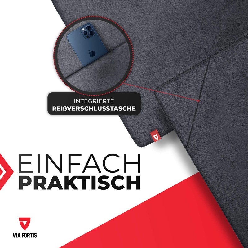VIA FORTIS Microfibre Hand Towel, Ultra Light and Quick-Drying, with Zip Compartment, Microfibre Towels, Ideal as Sports Towel, Beach Towel and Travel Towel, Grey