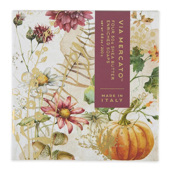 Via Mercato Gift Italian Soap Bar Set 4 x 50g, Individually Wrapped Gift Soaps, Autunno Collection