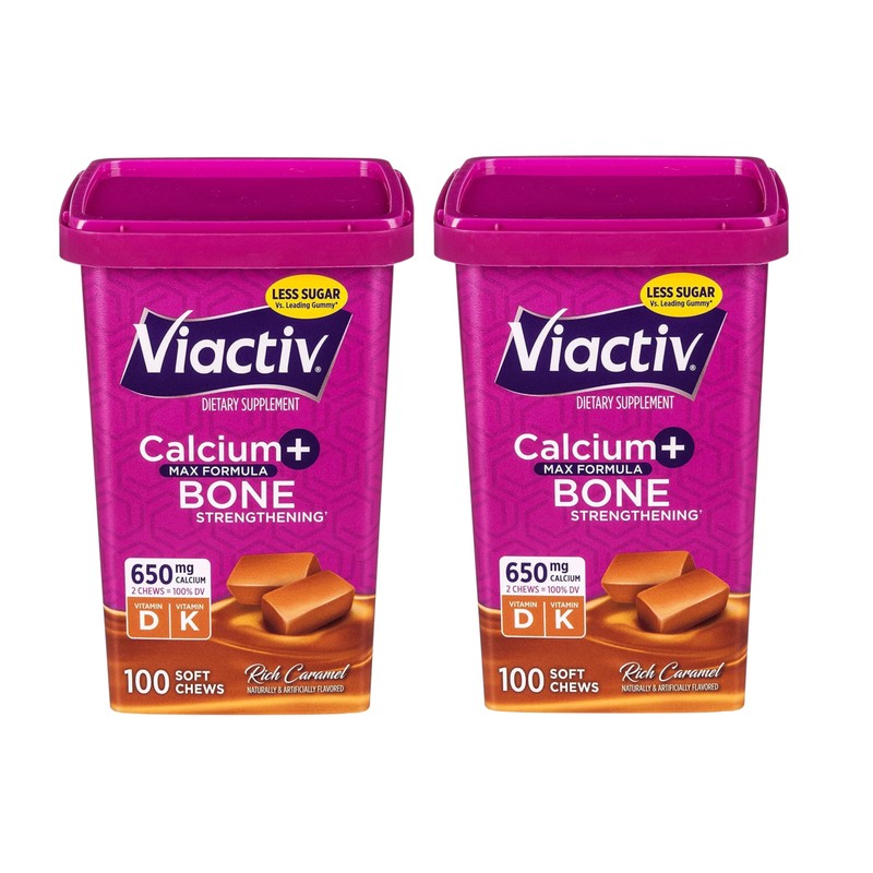 Viactiv Max Formula Calcium +Vitamin D3 Supplement for Bone Health, Rich Caramel, 100 Soft Chews - 2 Pack