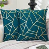 ViaElayu Cushion Cover 45 x 45 cm Turquoise Sofa Cushion with Golden Geometric Decorative Cushion Velvet Cushion Covers Modern Cushion Square Cushion Covers Decoration Set of 2 Bedroom