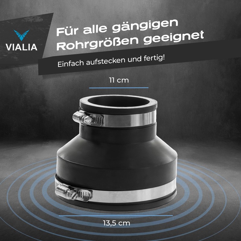 Discover the VIALIA Flexible Reducing Sleeve - your ultimate solution for the easy and effective connection of pipes and pipes of different or identical dimensions and materials.