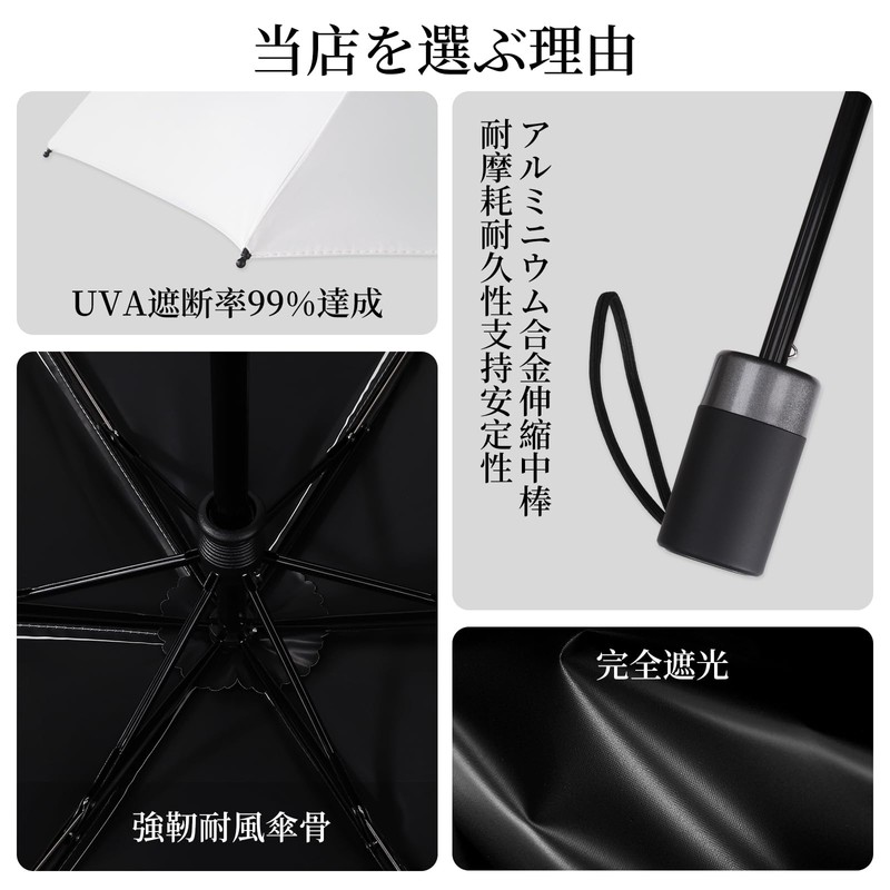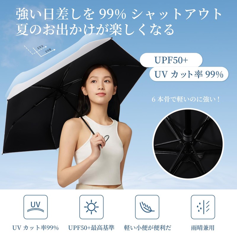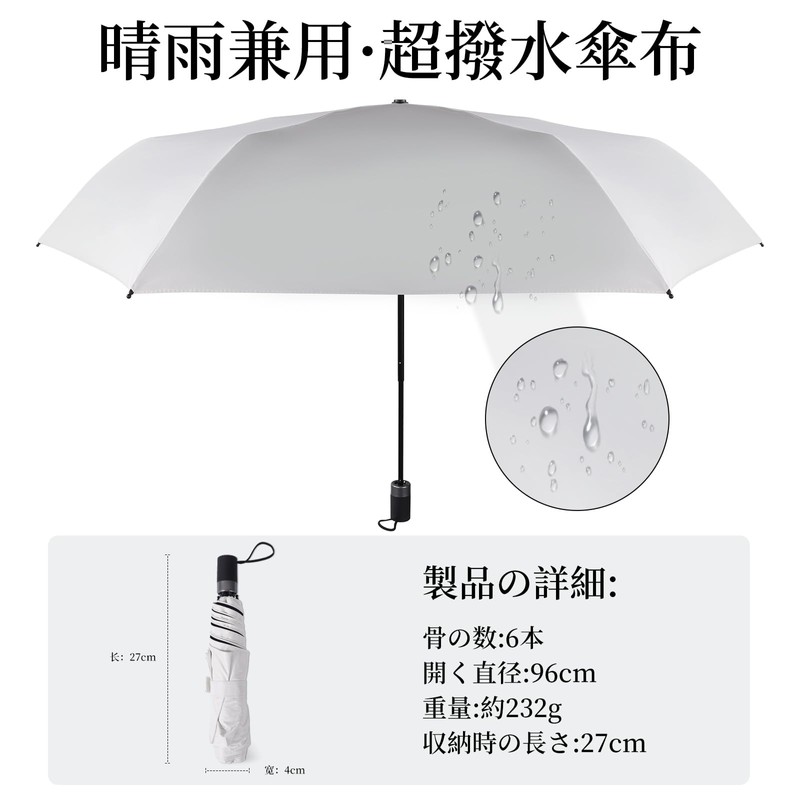 - (Rain or Shine) Windproof and Water Repellent Folding Umbrella: Not only does it block out heat and can also be used in sudden rain. Made of high-density fabric with a water-repellent finish, it has excellent water repellency than a normal parasol, and the rainwater will roll down like a beads, and shake it off with a light shake. The shaft is made of sturdy aircraft aluminum alloy, 6 ribs made of fiberglass and aircraft aluminum alloy. Durable It will return to its original even if it is flipped over in strong winds. This excellent item can be used regardless of the season, and is an indispensable item for UV protection during the rainy season