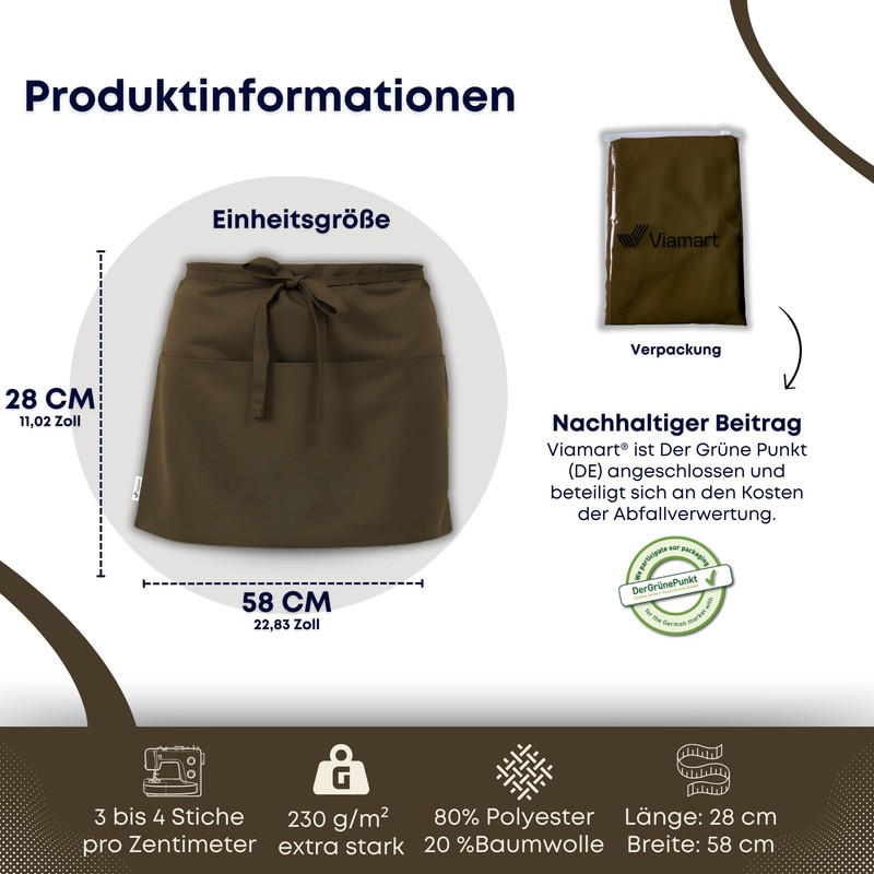 - 🌱 Sustainability in the foreground: this apron is made of ecological materials and water resistant. The unique blend of polyester and cotton guarantees a high quality product with a 2-year warranty of Viamart.