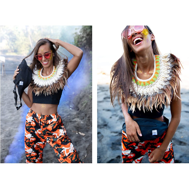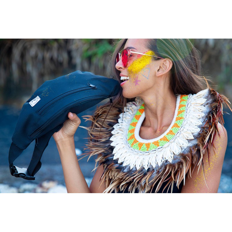 - COLORS and STYLE - We have many colors and patterns; Black, Pineapple, Hawaii, tribal, black and white, leopard, flamingo, palm leaves, tropical, retro floral and holographic Silver or Gold and more to come! With the adjustable strap this is a wear on your front, side or over the shoulder fanny pack. And of course you can also use it for walking, running, hiking, cycling, beach or travel (in case you are not at a festival for some weird reason?!)