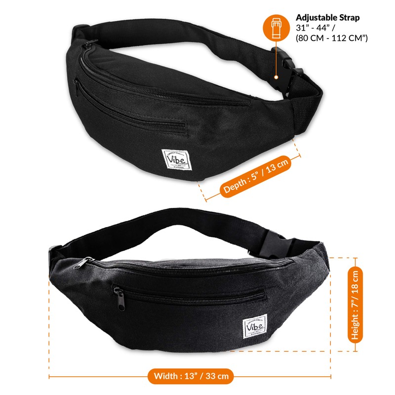 - SIZE - This cute fanny pack for women and men has an adjustable waistband that fits a 31" - 44" waist. High quality, 100% premium durable polyester construction which allows the fanny pack to remain comfortable while holding all your stuff. Fits all sizes - small, medium and large. All waist packs are unisex and great for men, women and teens or kids. This fashion fanny pack is 13" x 7" x 5".
