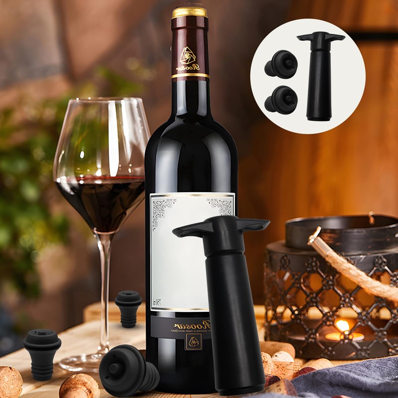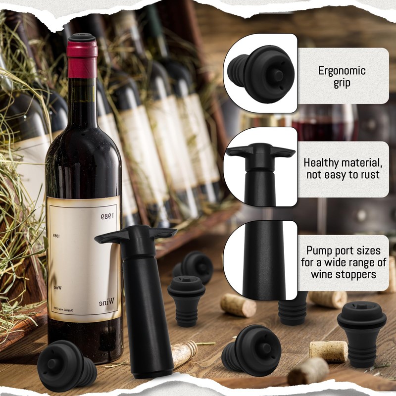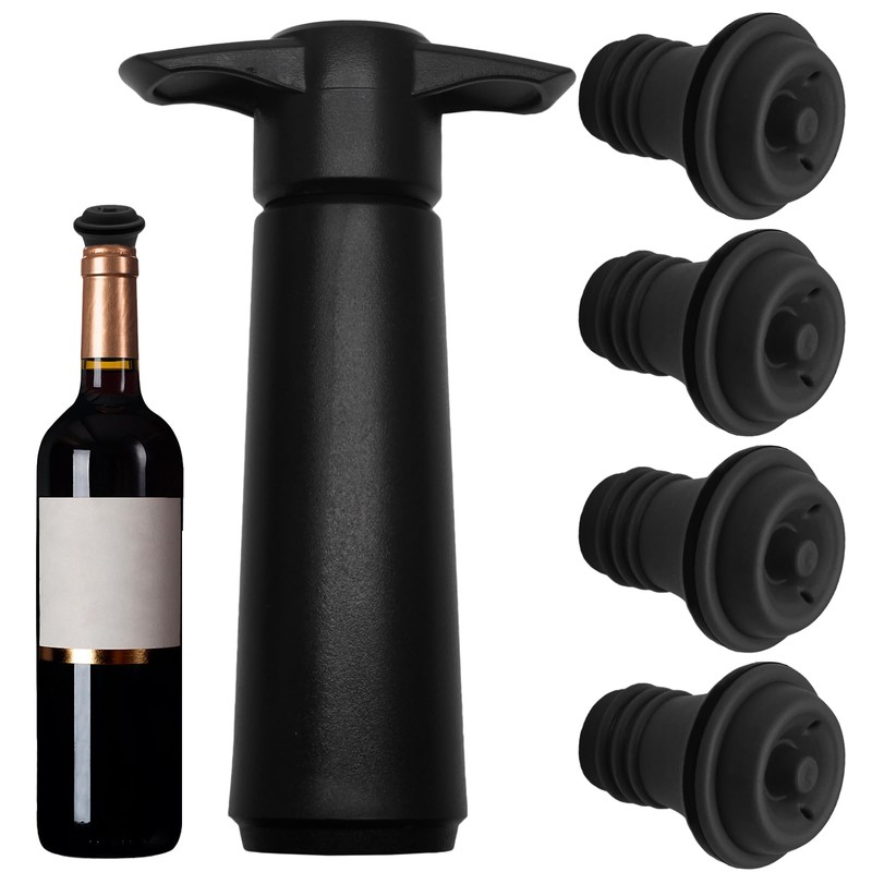 - Package Included: 4 black wine stoppers and a wine vacuum pump.