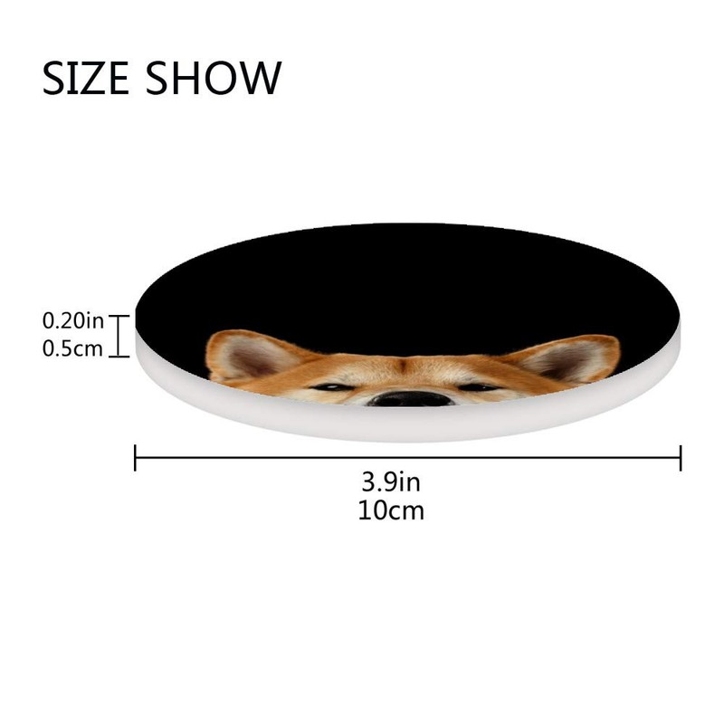 Vibiliyou Absorbent Coasters for Drinks Set of 4 with Cork Base,Funny Coasters Peeking Shiba Inu Dog Round Ceramic Stone Coaster for Wooden Table,Housewarming Gift