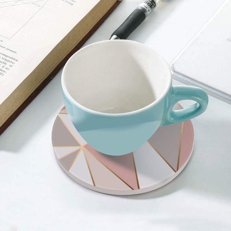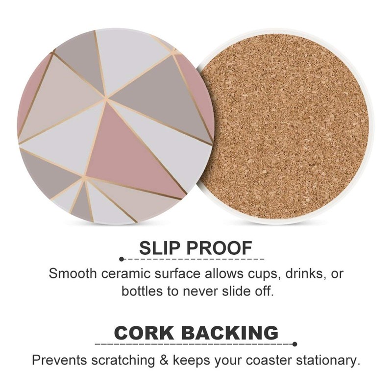 Vibiliyou Pink White and gray geometric triangle pattern Ceramic Set of 4 Absorbent Round Coasters for Drinks 4 inch - Ceramic Stone Cup Mat Water Absorb Spill Coaster for Mugs and Cups
