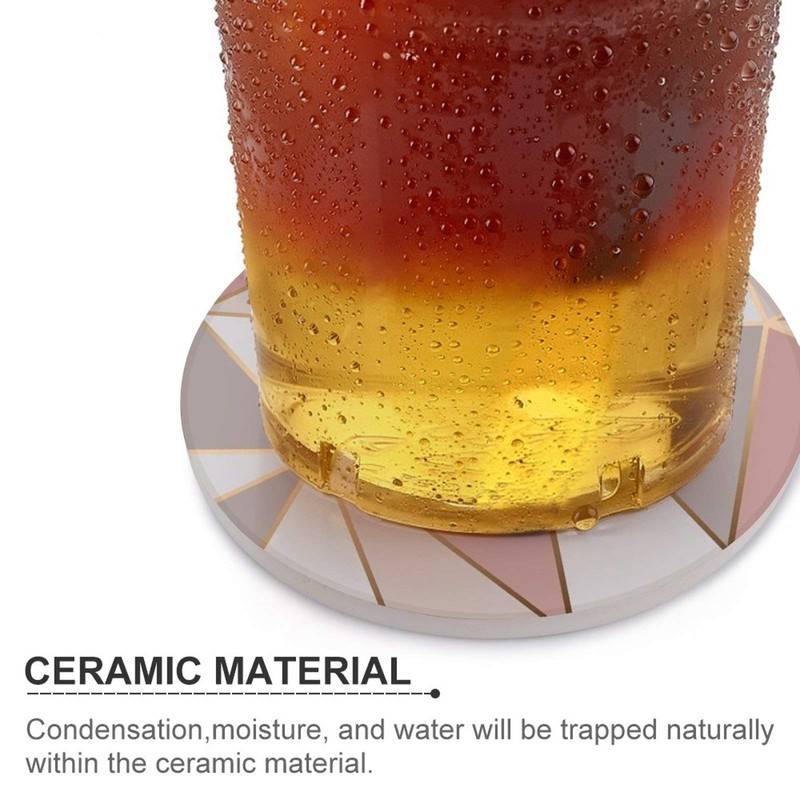 • 【Ceramic Material]】Ceramic material has excellent thermal insulation properties and can effectively block the transfer of heat. Therefore, when placing hot drinks, ceramic coasters can prevent heat from being directly transferred to the tabletop, and also prevent users from being scalded.