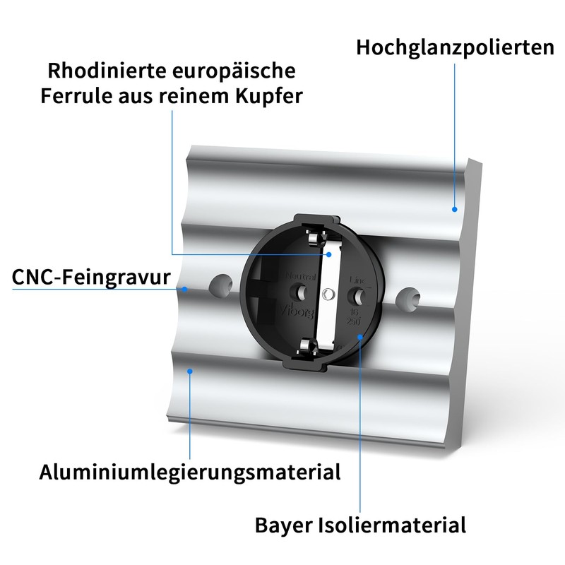 - ♛ Viborg legte das Hauptaugenmerk bei der Entwicklung dieser audiophilen Steckdose auf eine hohe Detail- und Bauqualität. Dieser Viborg VE02R Schuko-Steckdose verwendet sehr hochwertige Materialien, um eine perfekte Übertragung des elektrischen Signals zu gewährleisten. Die Kontakte sind aus reinem Kupfer gefertigt und profitieren von einer dreifachen Beschichtung aus OFC-Kupfer, Silber und Rhodium.
