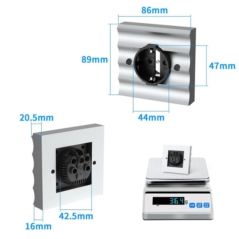 - ♛ Die Wandsteckdose ist tadellos verarbeitet. Die Montage (vorzugsweise durch einen Fachmann) geht leicht von der Hand. Immer schön wenn im Vorfeld die UP-Dose auch sauber eingesetzt ist, die Montage der Steckdose erfolgt nicht über die üblichen Klemmen, sondern mittels Schrauben in die Montagelöcher der UP-Dose.