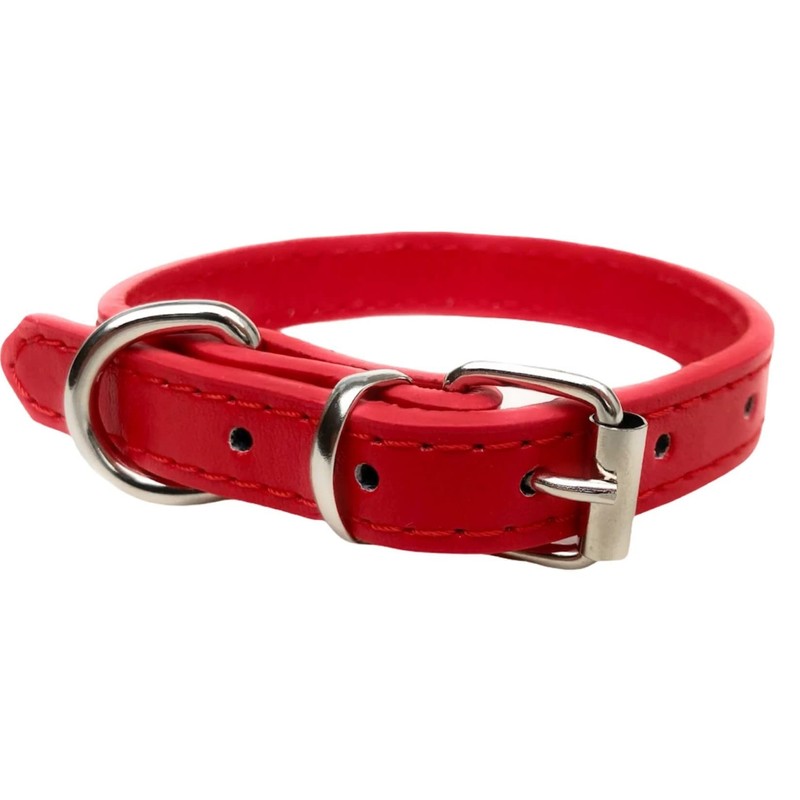 Vibrant Leather Dog Collar for Puppy, Cat, Kitten, Dogs - For Small, Medium & Large Pet Collars (Medium (28cm - 36cm Neck), Red)