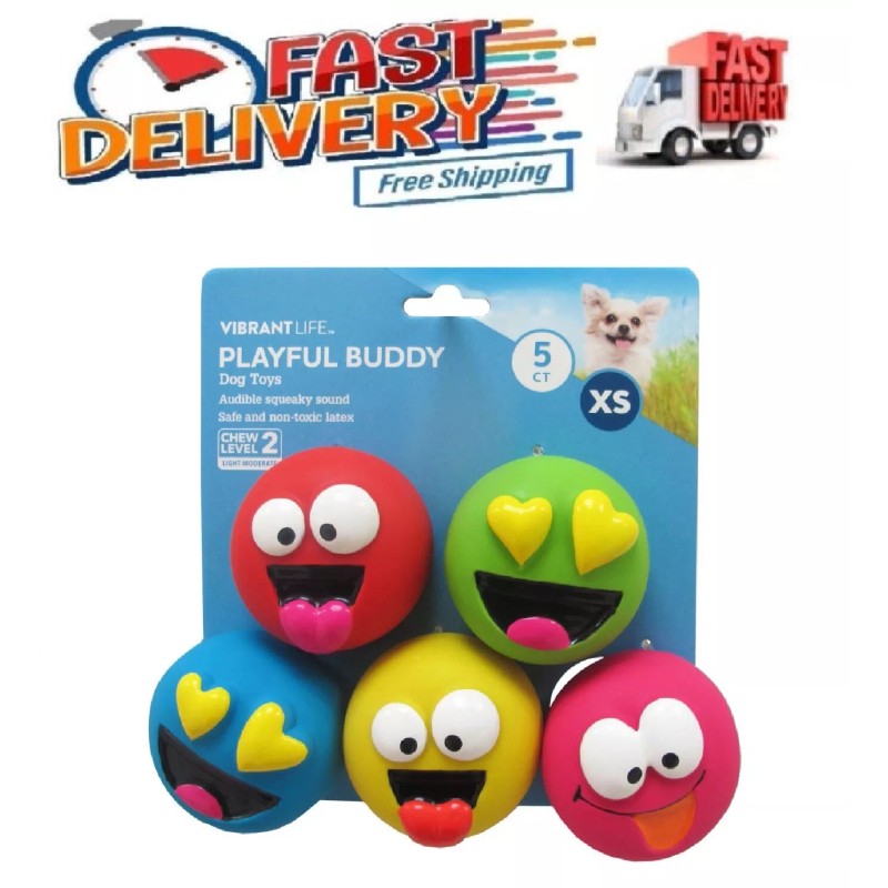 Vibrant Life Playful Buddy Dog Toys, Emoticon, Extra Small, 5 Count