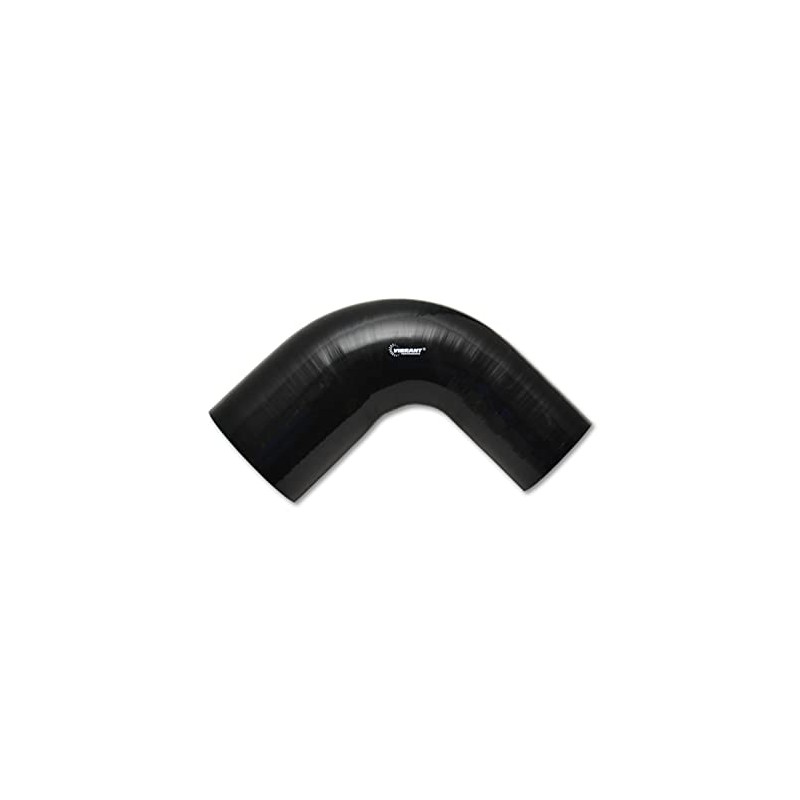 Vibrant Power 19793 Hose Coupler, Silicone, 4ply Aramid Reinforced, 90 degree Elbow, Reducer, Transition, 3.50 in. Inlet I.D, 2.50 in. Outlet I.D, 4.00 in. Leg Length, 3.50 in. CLR, Black, each