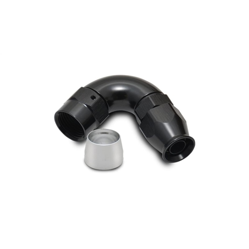 - Fitting, Hose End, Full Flow, PTFE, 120 Degree, Reusable, -12AN Hose, -12AN Female Thread, Aluminum, Black Anodized, use with Vibrant 18000 series PTFE Lined Flex Hose, each