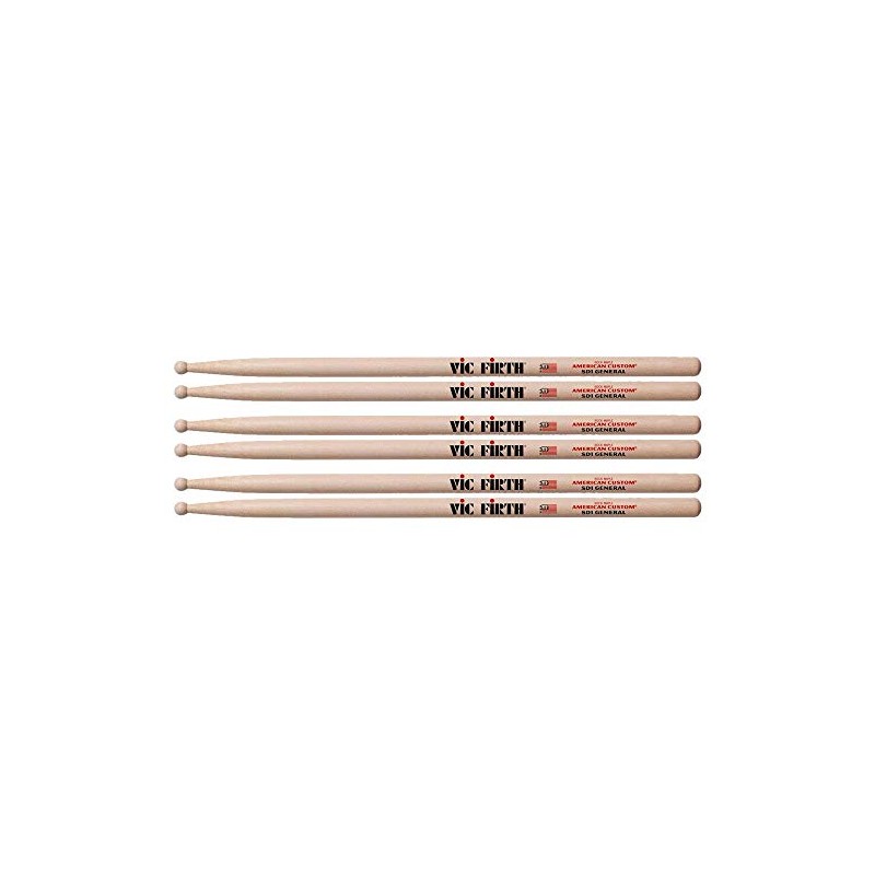 - This bundle includes 3 pack Vic Firth SD1 General Wood Tip Drum Sticks.
