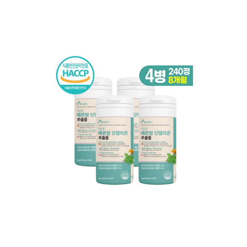 Vicain Active Lemon Balm Dandelion Extract 60 tablets 4 bottles Rosemary Organic Milk Thistle / 비카인 액티브 레몬밤 단델리온 추출물 60정 4병 로즈마리산 유기농 밀크씨슬