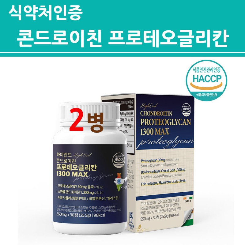 Vicain High-End Chondroitin Proteoglycan 1300 MAX Bovine Cartilage Salmon Nose Type 2 Collagen Ministry of Food and Drug Safety Certified 2 Bottles / 비카인 하이엔드 콘드로이친 프로테오글리칸 1300 MAX 소연골 연어 코 2형 콜라겐 식약처인증 2병
