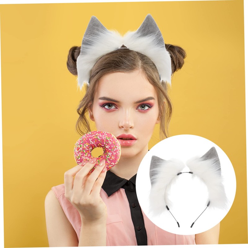 VICASKY 1Pc Furry Ears Headband Bendable Faux Hair Accessory for Holidays Decorative Hairband with Cute Wolf and Fox Ears for Costume Parties and Festivals