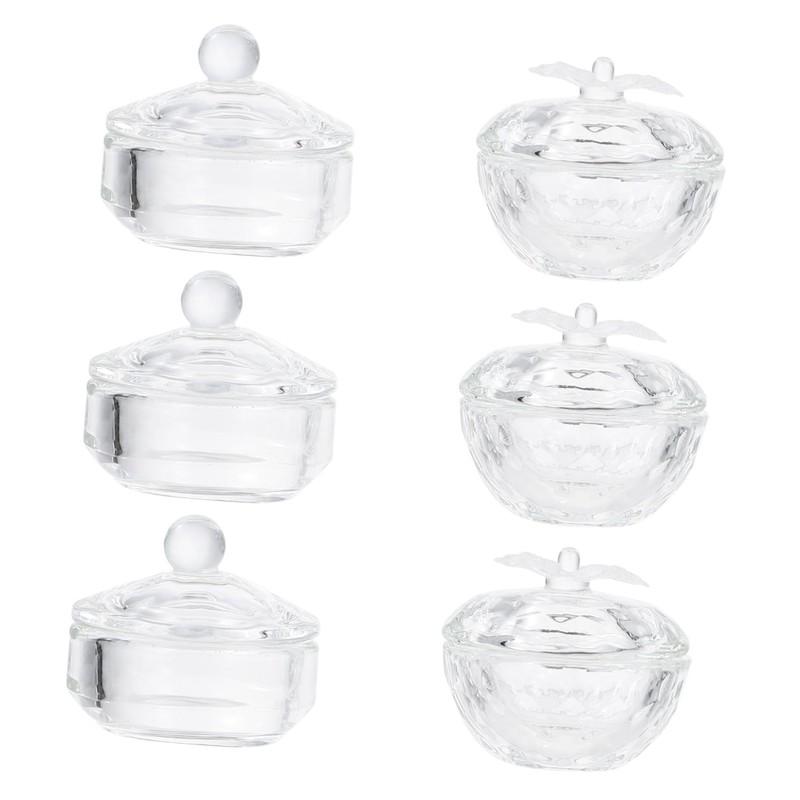 VICASKY 6pcs Mini Glass Nail Art Crystal Cups with Lid Safe Lightweight Manicure Liquid Containers for Nail Salons Artists and Home Use