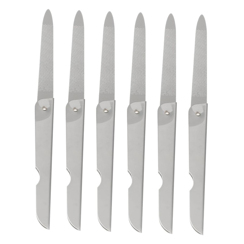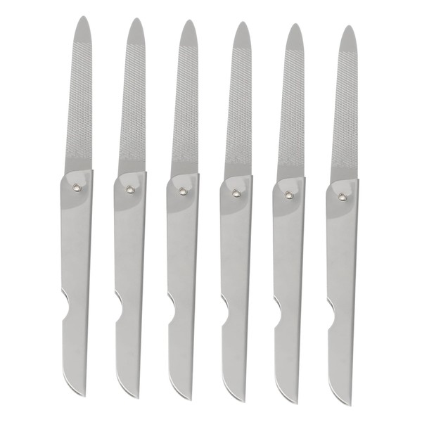 VICASKY 6pcs Stainless Steel Foldable Nail Files for Compact Nail Buffer for Manicure for Home and Travel Use