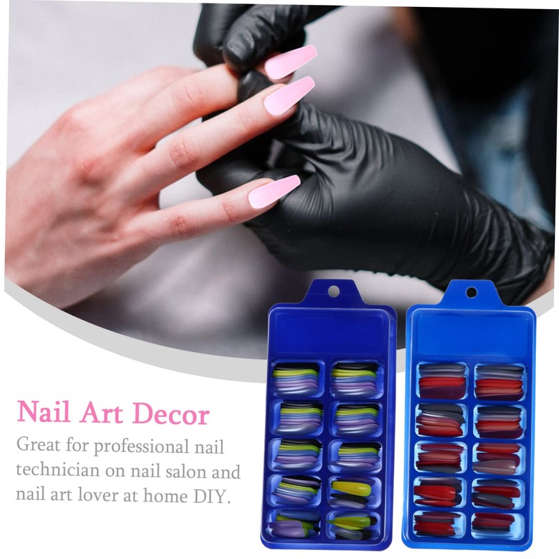 Nail Decor Made of grade material, this set of false nail is and for your nail DIY, featuring delicate and stylish design, very eye-catching and charming, which makes you more attractive.Colorful Long Artificial Nail It is also an your friends