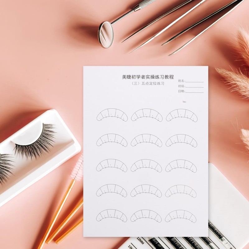 eyelash grafting guide poster Featuring a range of lash practice templates and mapping charts, this training set is ideal for those new to eyelash extensions.eyelash extension supplies for training The practice sheets and workbooks provide detailed lash application and positioning, helping users develop precision and confidence.lash mapping chart Ideal for both self-study and professional training environments