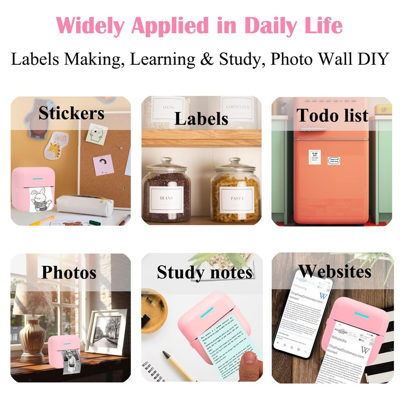 Vicbear Vicbear Mini Portable Printer, Inkless Sticker Printer with 12 Rolls Paper, Thermal for Notes/Photos/Stickers/Labels/Receipts, Compatible with iPhone, Android Phone & Tablet, Pink