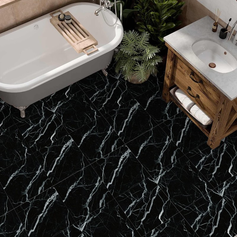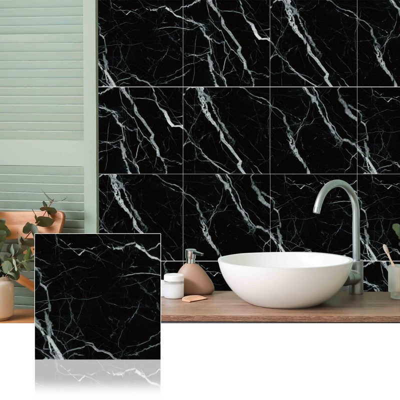 VICCI 24pcs Floor Tile Peel and Stick Wall Tiles Stickers for Kitchen Backsplash 7.87"*7.87" Self-Adhesive Floor Decals Bathroom Vanities Fireplace Laundry Table Home Decor, Black Marble