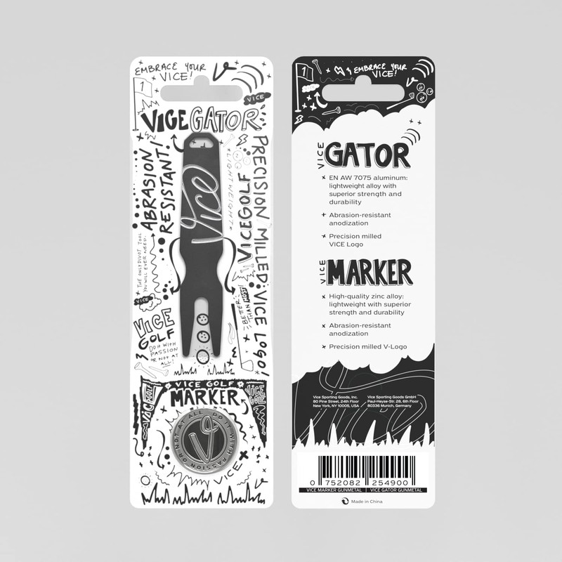 Vice Golf Gator Divot Tool + Ball Marker Set | Gunmetal