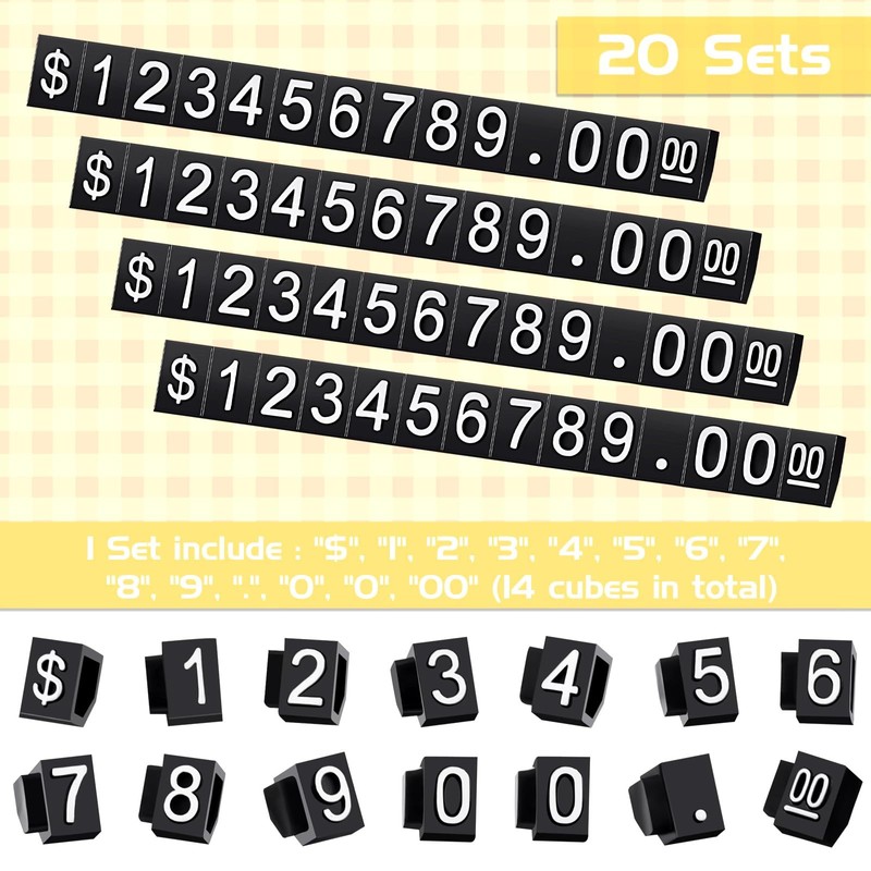 - Abundant Quality: you will receive 20 sets of price tag cubes in total, each set consists of 14 small squares, including "", "1", "2", "3", "4", "5", "6" ", "7", "8", "9" and ", "0", "0", "00", sufficient quantities to meet your various usage and replacement needs, suitable for high volume use in retail stores
