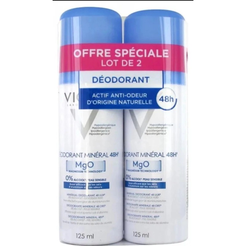 Brand new 2-pack of Vichy Mineral Deodorant 125ml Spray bottles