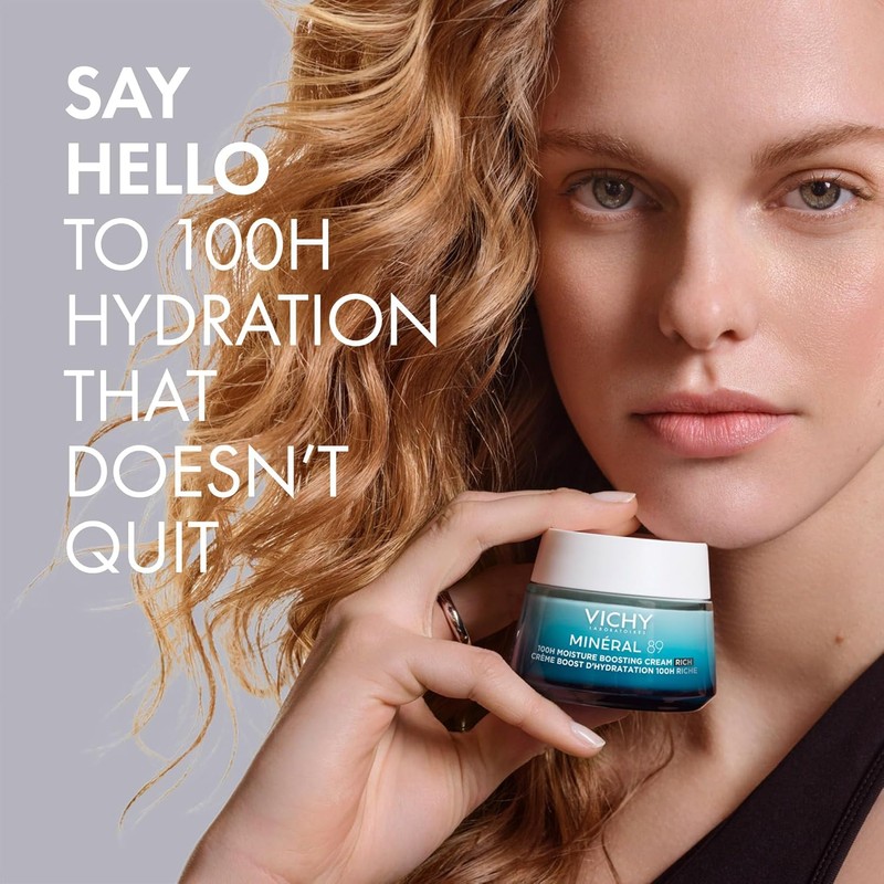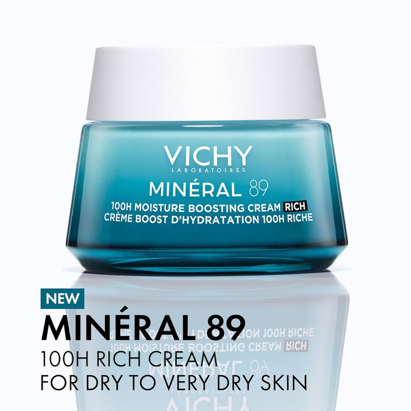 VICHY Mineral 89 Rich Cream, 100H Moisture Boosting Cream, Hydrating Face Moisturizer with Hyaluronic Acid, Niacinamide and Lipids, Daily Face Moisturizeer with Rich Texture for Dry Skin