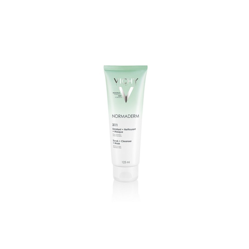 Vichy Normaderm Scrub Cleanser Mask 3 in 1 is a face cleansing cream with triple action, exfoliation, cleansing and mask for adult skin with oiliness, imperfections and dilated pores.