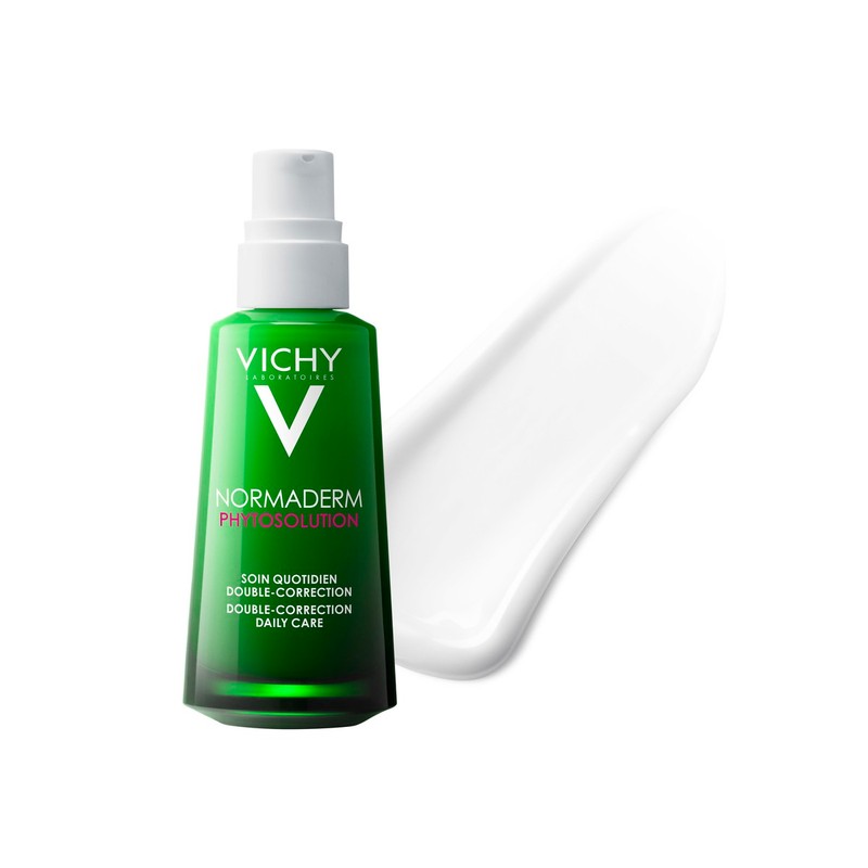 A daily double-action moisturiser that targets imperfections whilst hydrating skin for up to 24 hours.A double-action, daily moisturiser for oily, blemish-prone skin. This lightweight cream is easily absorbed and targets imperfections whilst revitalizing and hydrating skin for up to 24 hours. In addition to protecting the skin barrier and controlling the appearance of excess oil, Normaderm Phytosolution Double-Correction Daily Care leaves skin looking smoother and more radiant. Dermatologically tested. Hypoallergenic.Skin remains hydrated for up to 24 hours.Reduces the appearance of imperfectionsEnhances the skin barrier functionSkin is protected from pollutionSkin appears more radiant and luminousPores appear tighter and less visibleContains natural origin, dermatological ingredients including salicylic acid to exfoliate, hyaluronic acid to enhance skin hydration, probiotics and Vichy Mineralizing Thermal Water. Rich in 15 minerals to boost antioxidant defences.
