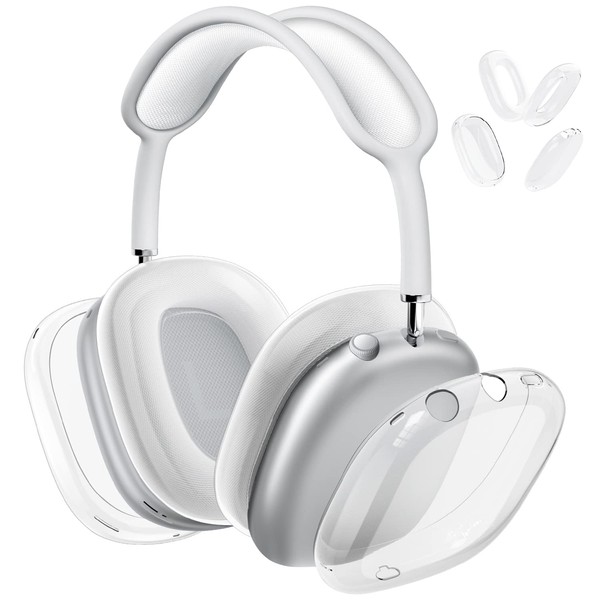 VICHYIE Case Cover for AirPods Max, with Ear Pads Cover, Clear Soft TPU Case Anti-Scratch, Dust Proof, Transparent Accessories Protector Cover for Airpods Max Headphones (Clear Set)
