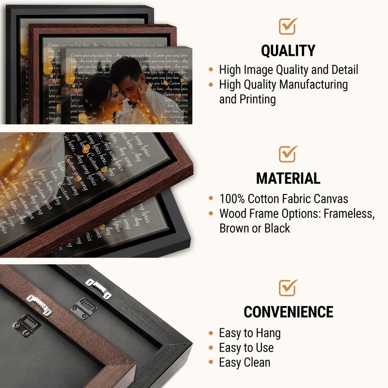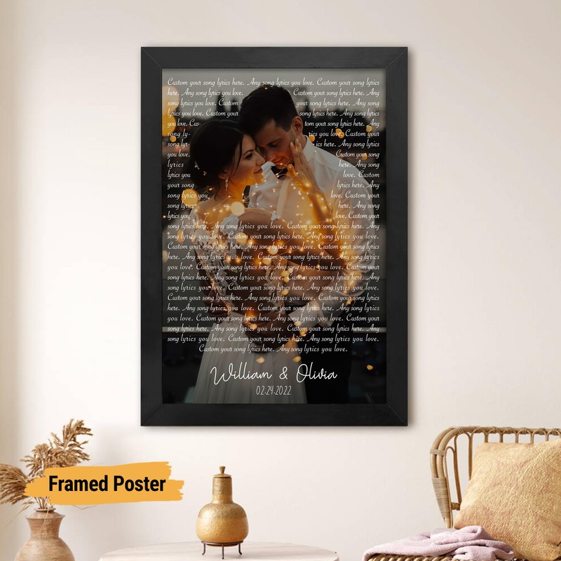 VICILO Personalized Song Lyrics with Photo Framed Canvas Wall Art - Present Wedding First Dance Favorite Song for Couples Anniversary - Perfect Song Sentimental House Decor