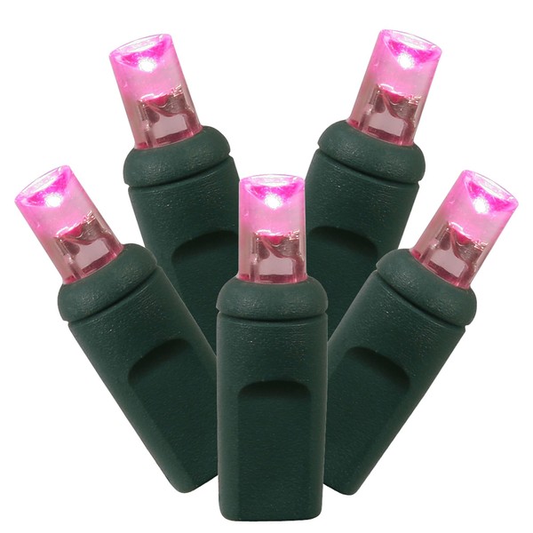 Vickerman X6G6110 100 Light Wide Angle LED Light Set Pink Lights on Green Wire