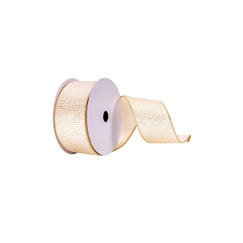 Vickerman 2.5" x 10 yd White and Gold Stripes Ribbon, Seasonal Christmas Ribbon for Gift Wrapping, Tree Decor
