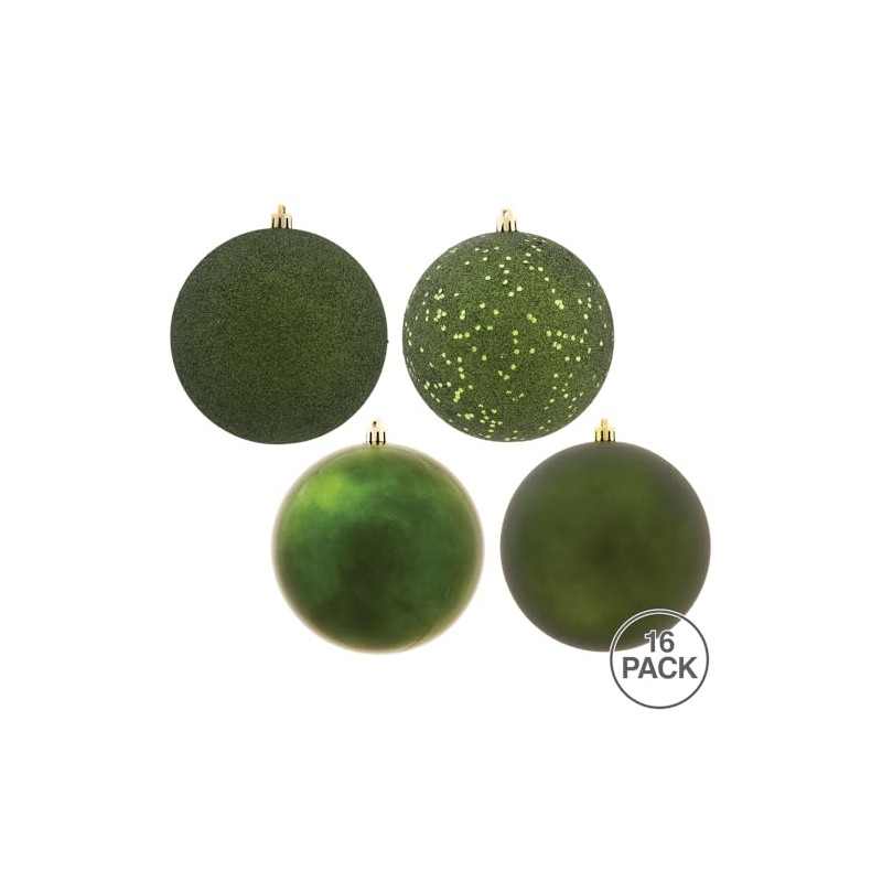 Vickerman 3" Moss Green 4-Finish Ball Ornament Assortment, 16 per Box